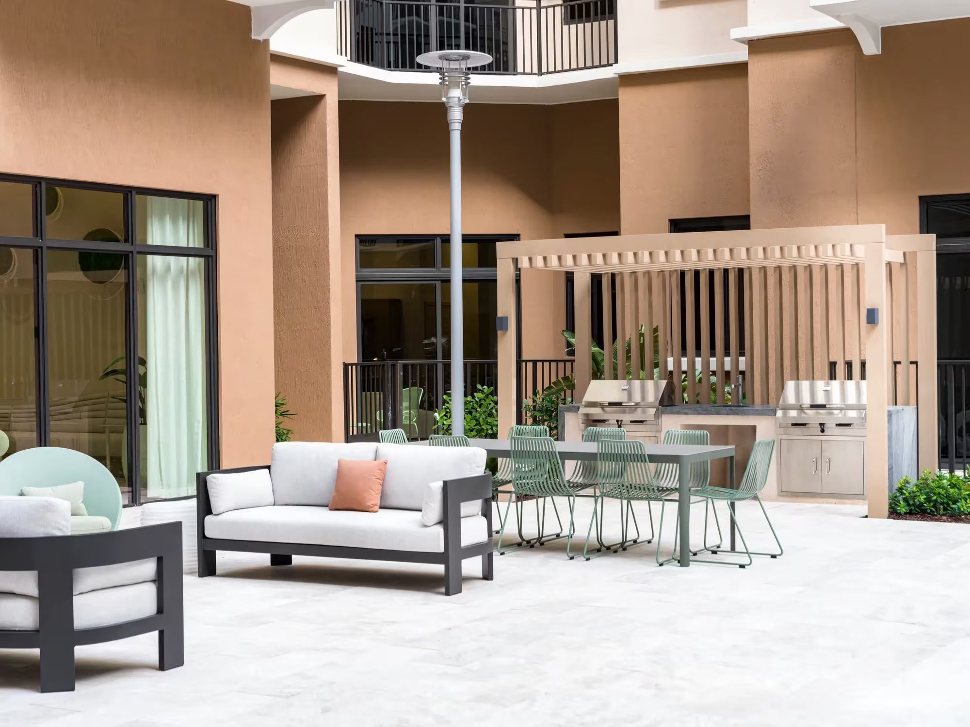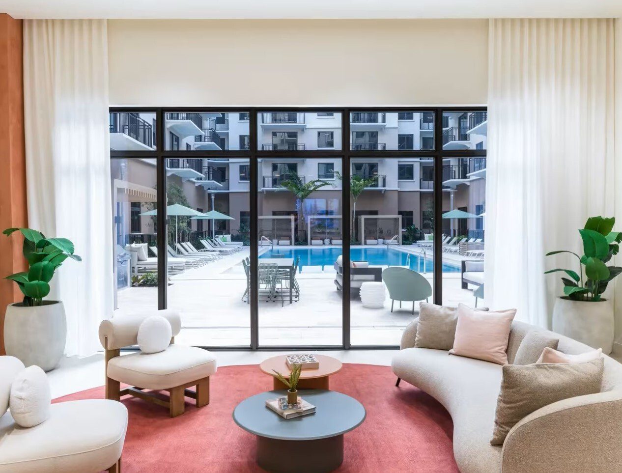 amenities, including a hotel-inspired lobby and coffee bar, a resort style